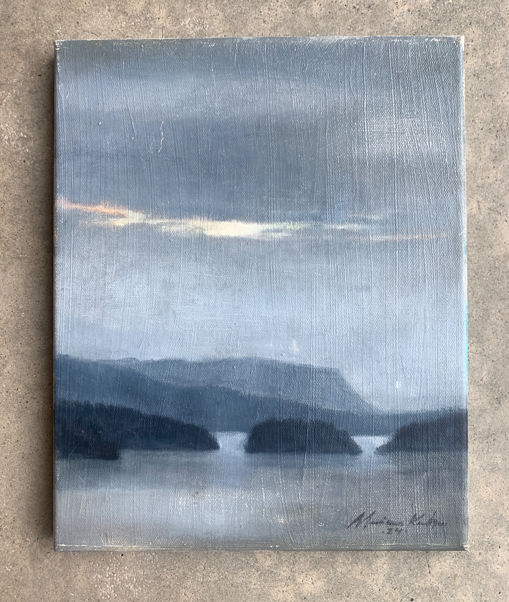 Oilpainting on stretched canvas. 24x30 cm without frame. Signed. 3 400 nok.