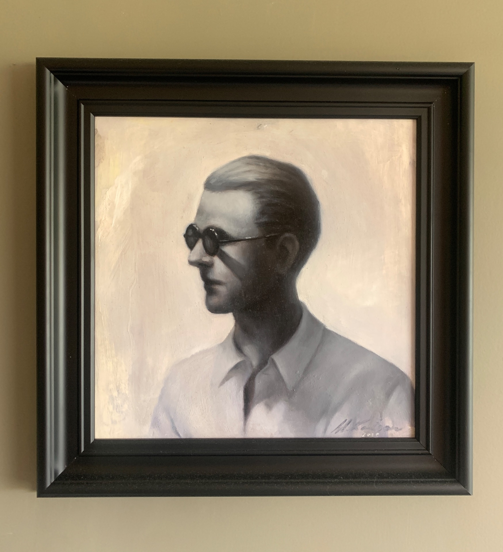 Oilpainting on mdf, framed. 38X38 cm. 4 900 nok.